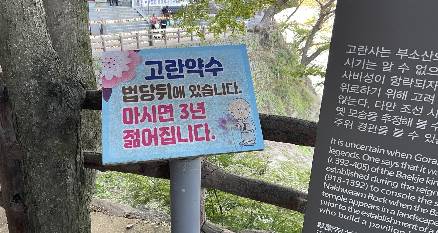고란사에는 마시면 3년이 젊어진다는 '고란약수'가 유명합니다. 막 퍼마시고 싶어지네요.ㅎㅎ
