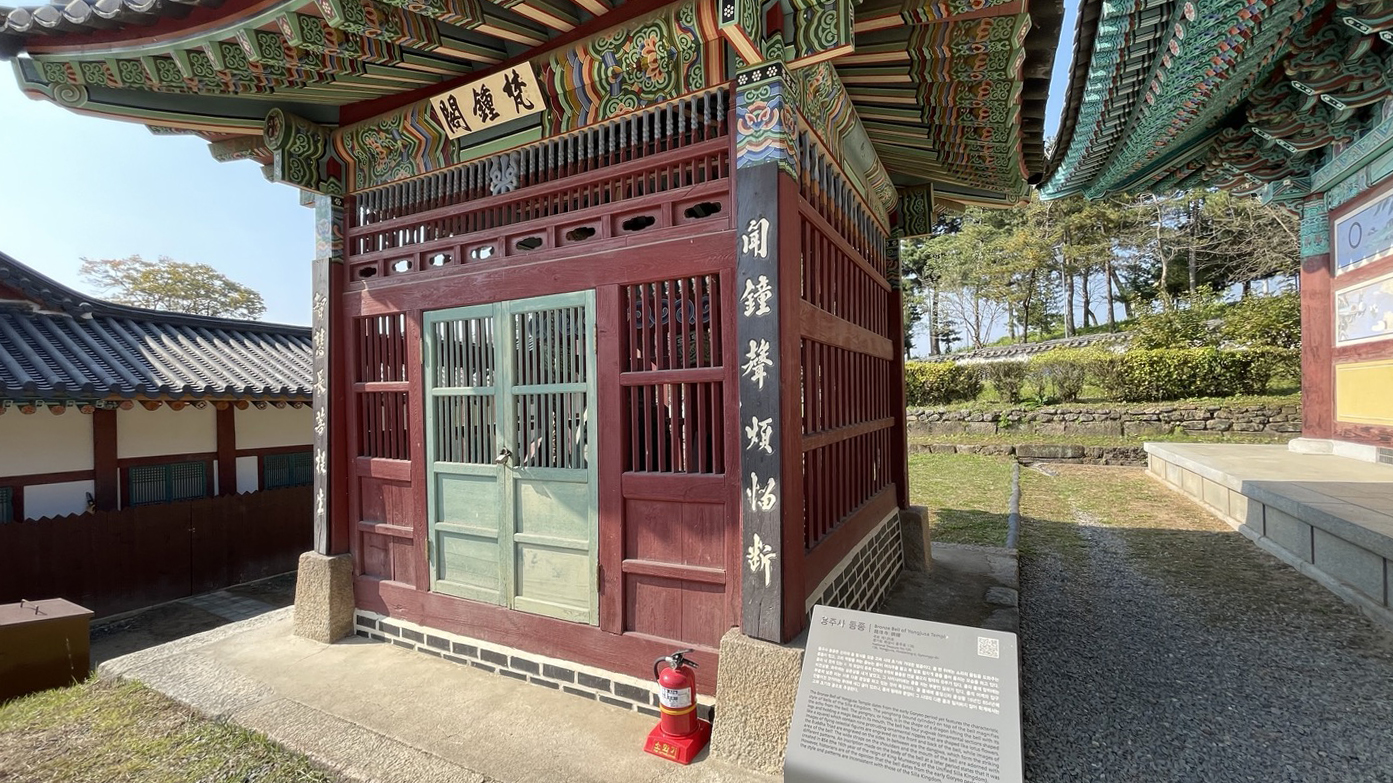 용주사 동종입니다. 국보 제120호로, 신라 종 양식을 보이는 고려시대 초기에 만들어진 범종입니다.