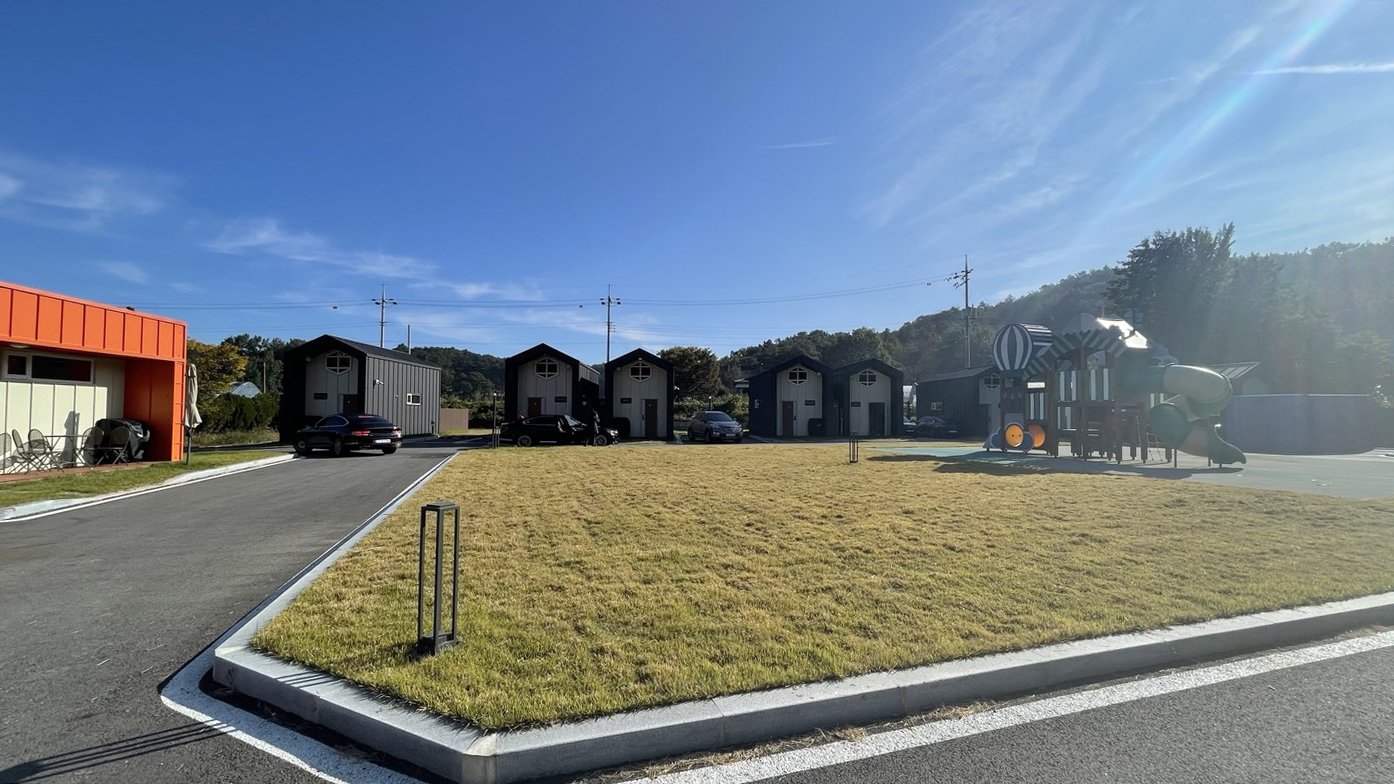 중앙에 잔디광장이 있고, 잔디밭 가운데 놀이터가 설치되어 있어요. 어린 아이들과 오면 뛰어놀기 좋겠네요.^^