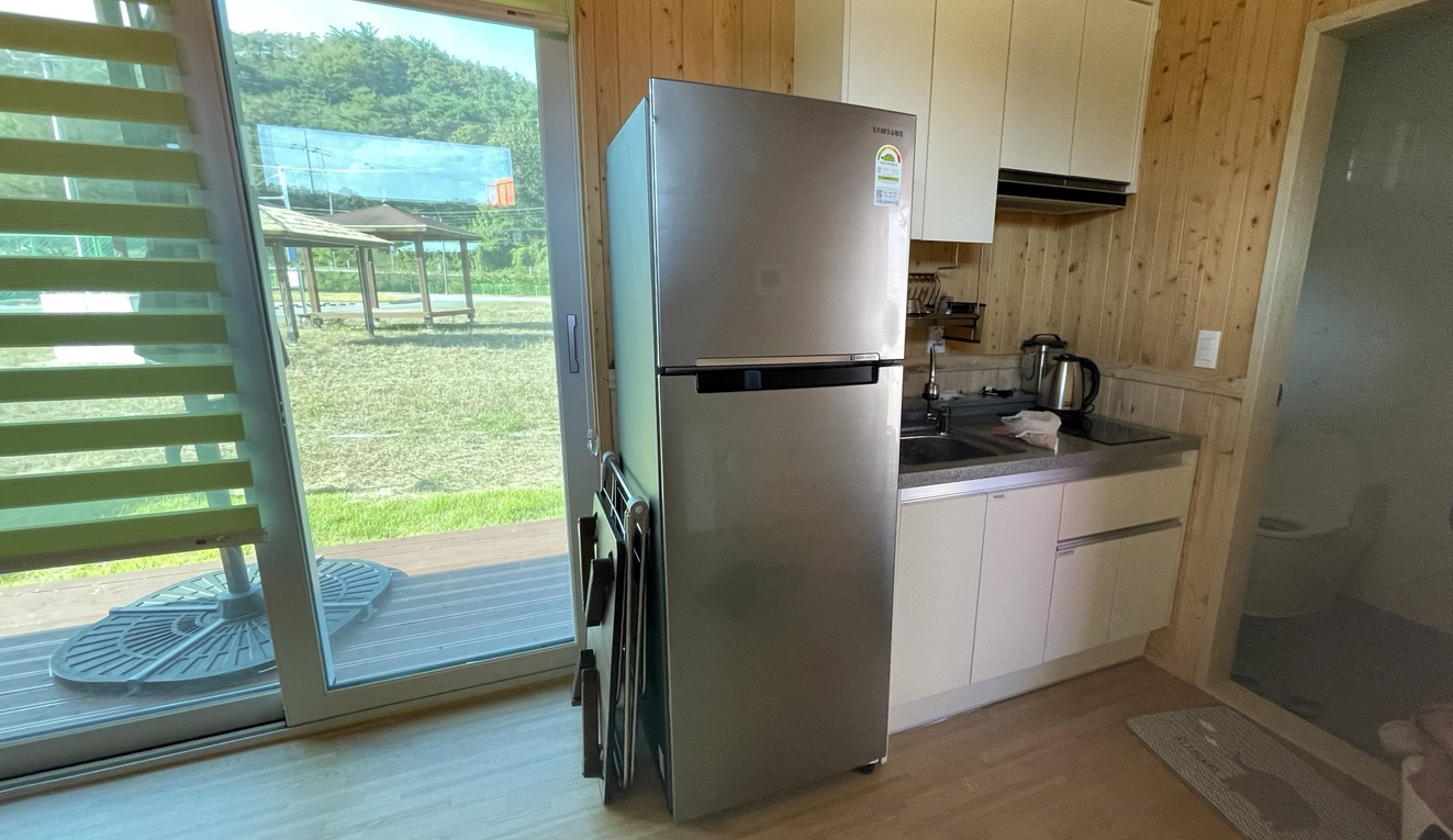 제가 짐정리하는 동안 남편과 아이들이 잔디밭에서 배드민턴을 재미있게 치더라고요. 조금 일찍 입실해서 여가시간을 보내기에도 괜찮을 것 같습니다.