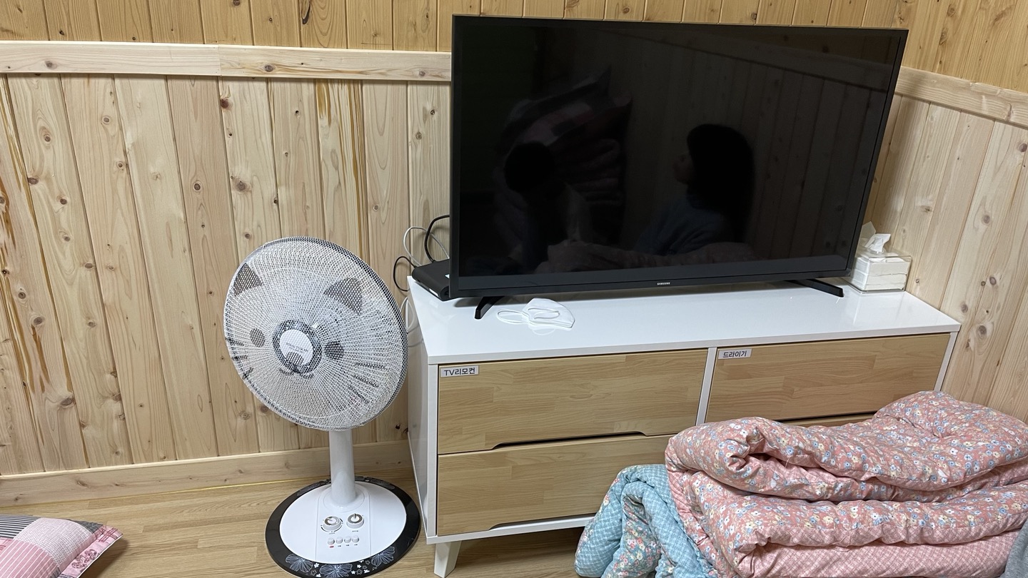 밤날씨가 꽤 쌀쌀한 계절이라 그런지 저녁에 도착하니 객실 바닥이 많이 차갑게 느껴졌습니다. 급한대로 이불을 깔아놔서 어수선해 보이는데요, 침구도 4인에 맞게 깔끔하게 준비되어 있었습니다.