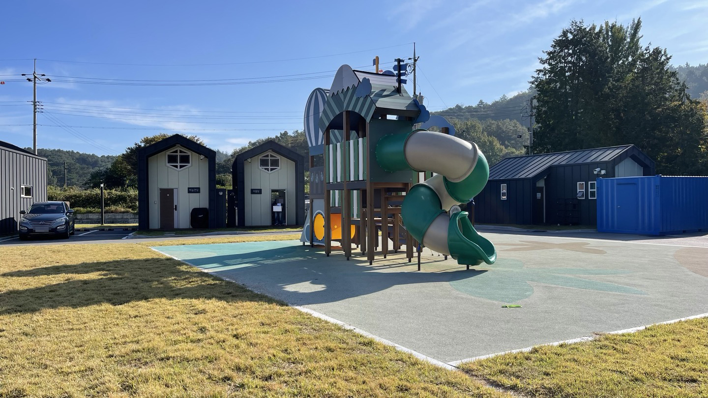 중앙에 잔디광장이 있고, 잔디밭 가운데 놀이터가 설치되어 있어요. 어린 아이들과 오면 뛰어놀기 좋겠네요.^^