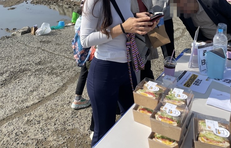 망둥어코스에는 커피차량과 샌드위치도 준비되어 있었는데요. 이건 사전등록시 판매한 쿠폰으로 교환할 수 있어요.