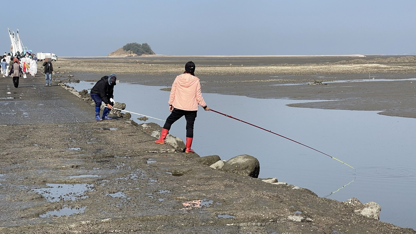 농섬으로 가는 길 중간중간 낚시를 하거나 조개를 캐고 있는 사람들을 볼 수 있었습니다.