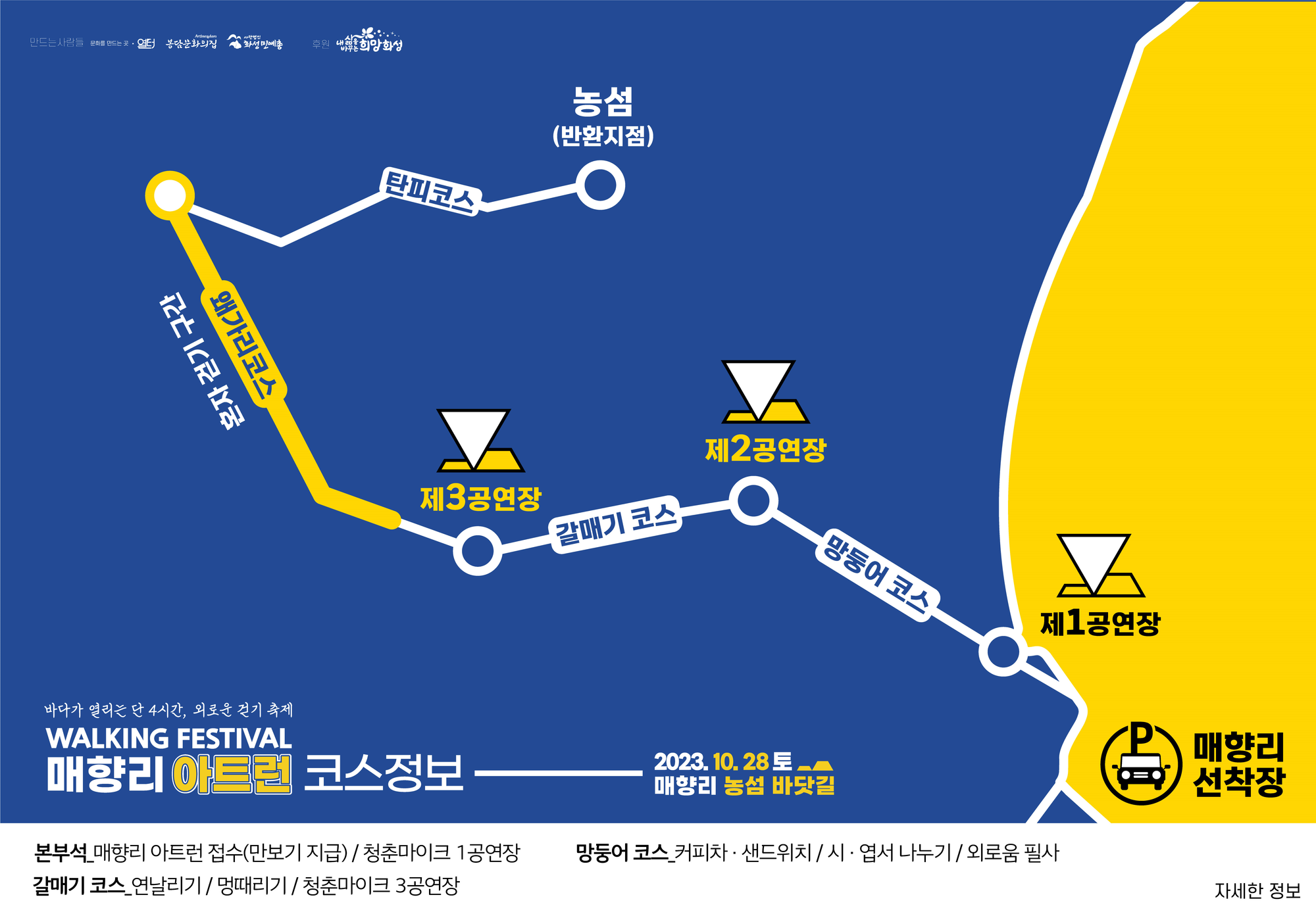 '예술과 함께 하는 느린 걷기 축제'라는 캐치프레이즈를 걸고 올해 제3회차를 맞는 문화예술프로젝트로, 2023년 10월 28일 10시부터 매향리 농섬 바닷길에서 진행되었습니다.