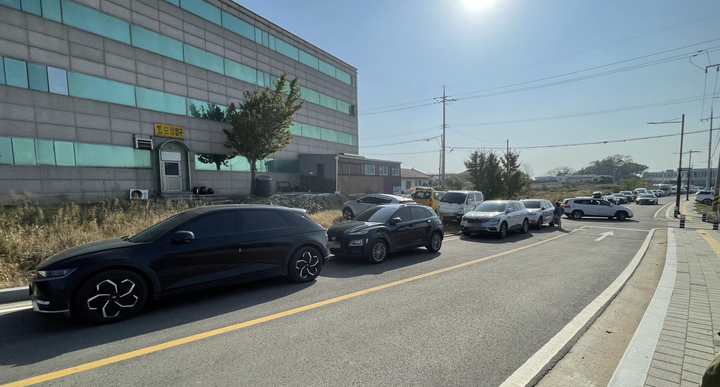 행사가 시작되는 10시쯤 고온항에 도착했습니다. 고온항 주차장 주변이 공사중인데다 먼저 도착한 차들로 이미 만차여서 도로에 주차를 해야만 했습니다. 주차요원의 도움으로 주차하는데 큰 혼잡이 있지는 않았는데요, 도로를 따라 주차된 차가 길게 늘어서 있어 길을 따라 한참을 올라와서야 주차할 수 있었습니다.