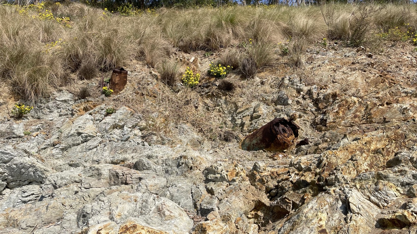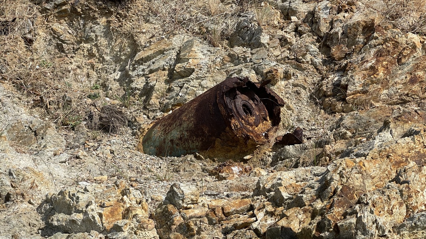 농섬 곳곳에 박혀있는 포탄들이 보입니다. 크기가 정말 커서 놀랐습니다. 큰 건 한아름 정도 되보였어요.