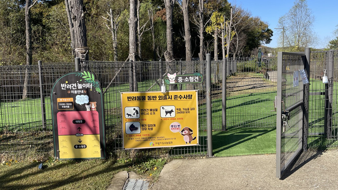 둘레길 주변에 반려견놀이터도 있어요. 10:00~18:00까지 무료이용 가능하다고 해요.