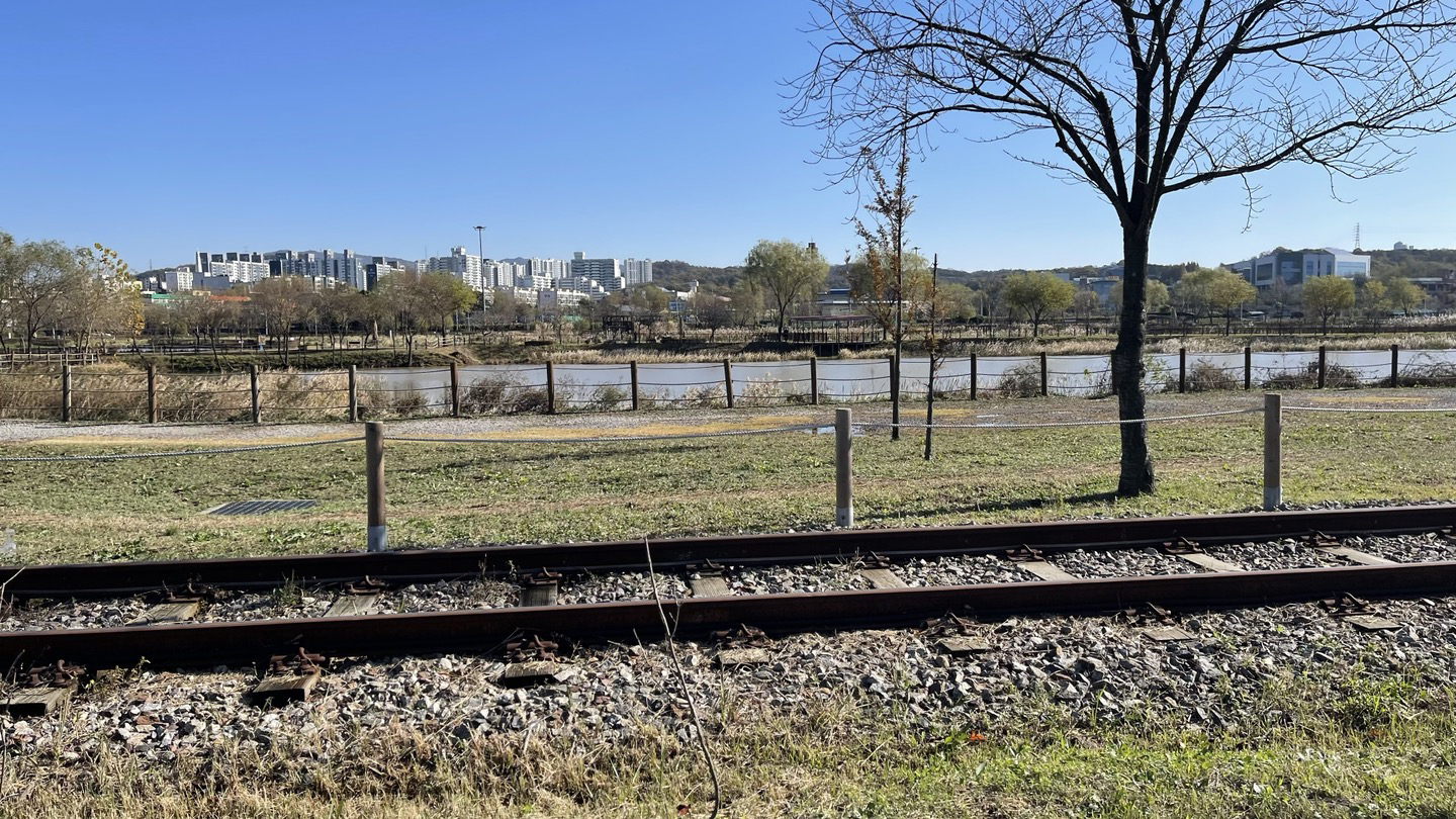 둘레길을 따라 의왕레일바이크 철로가 나란히 설치되어 있습니다.