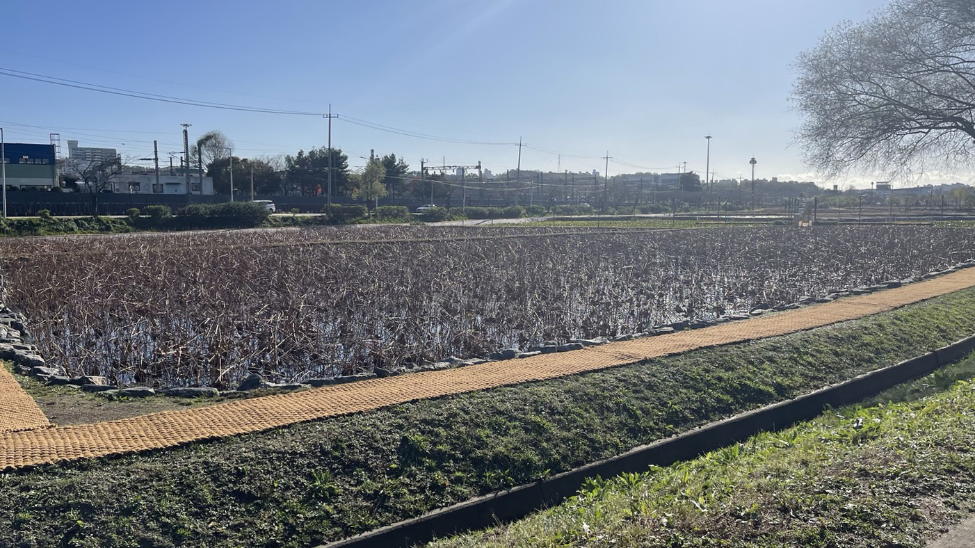 지금은 색 바랜 연꽃줄기만 어지럽게 펼쳐져 있어요. 여름날 화려했을 모습이 궁금합니다.