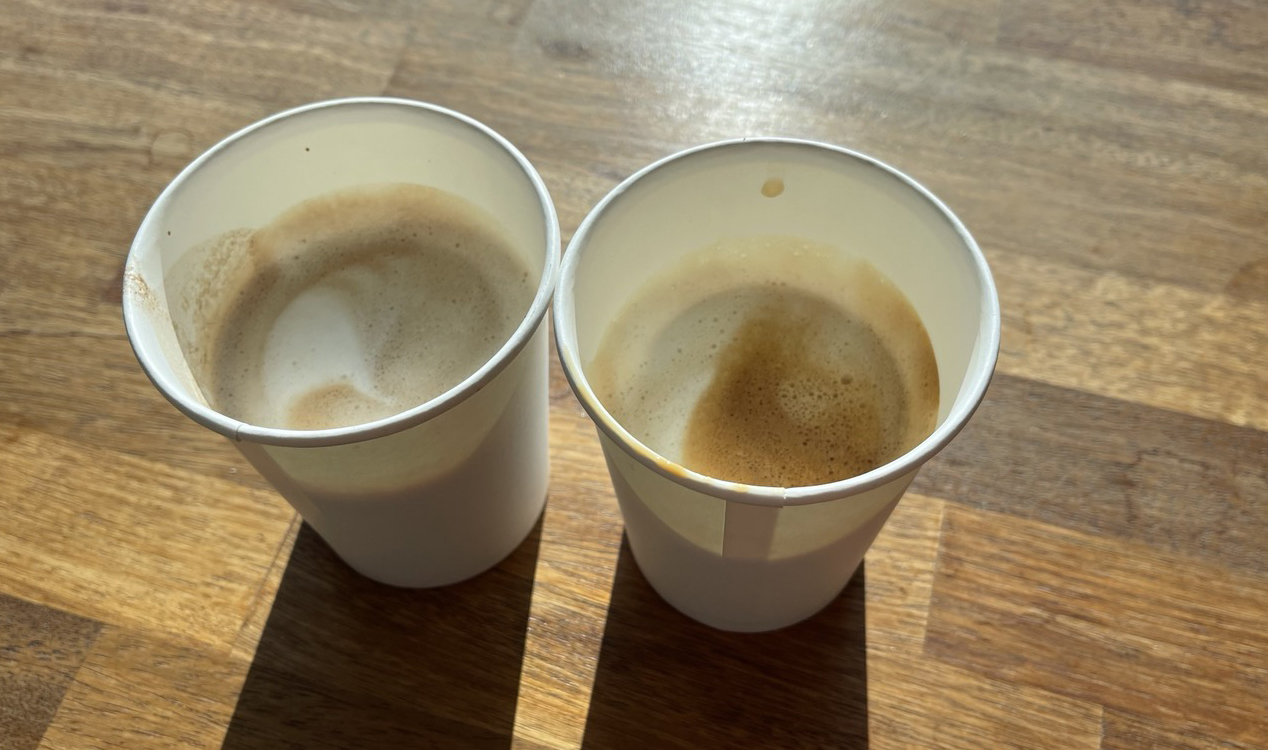 커피머신으로 직접 내려주는 커피에요. 카페라떼 2잔 주문~