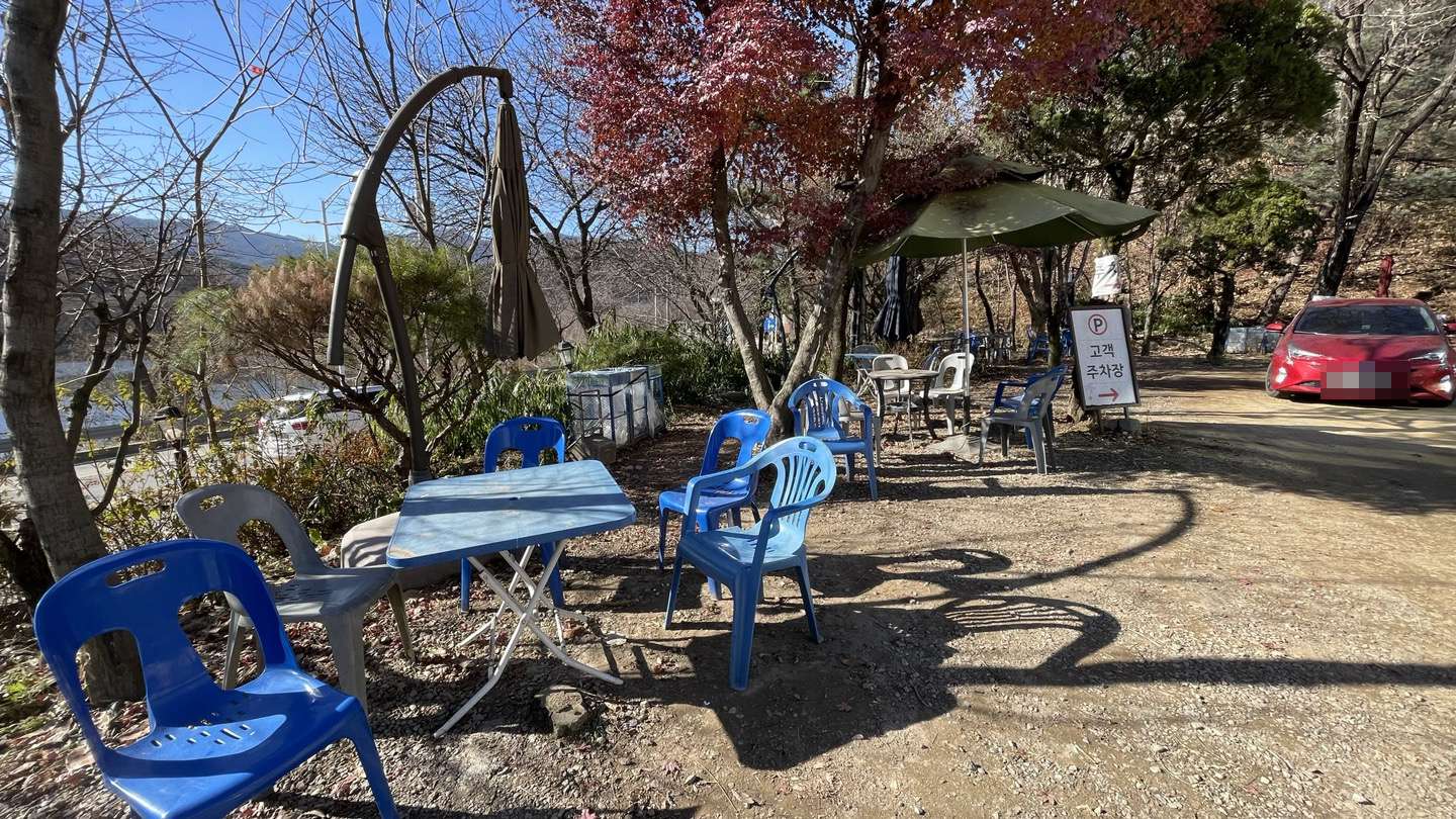 따뜻한 날에는 건물 앞 테이블에서 커피 한잔 마시며 저수지 감상도 좋을 것 같습니다.