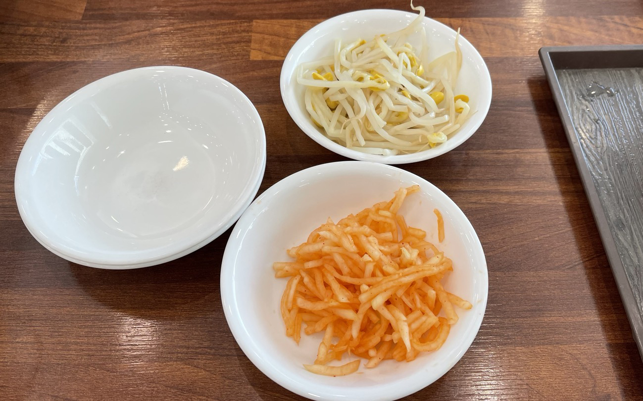 쭈꾸미와 비벼먹을 수 있는 콩나물과 생채가 나오고요.
