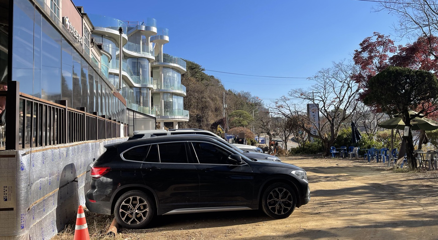 건물 앞뒤로 주차장이 넓게 마련되어 있습니다. 하지만 사람들이 몰리는 시간이라 그런지 주차장도 꽉꽉 차있네요.