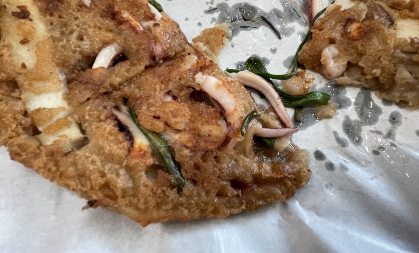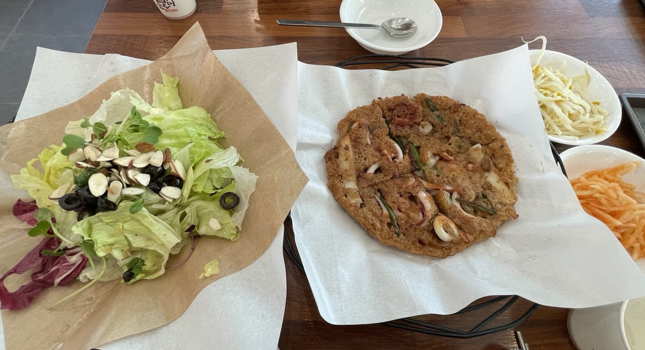 도토리해물전은 바삭하게 고소하고, 올리브 듬뿍 올려진 샐러드도 신선했습니다.