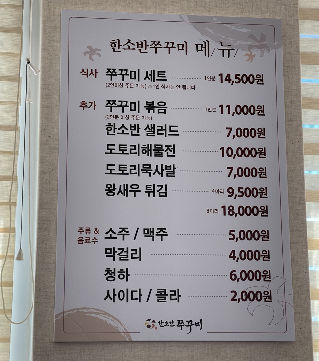 식사는 '쭈꾸미 세트' 단일 메뉴입니다. 식사 외에 추가 메뉴들이 있습니다.