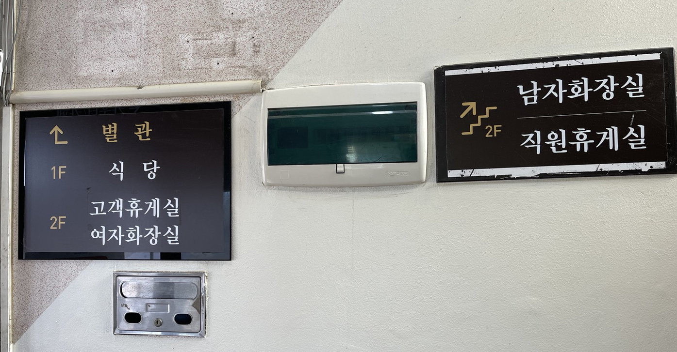 1층엔 식당, 2층엔 휴게실과 화장실이 있습니다.