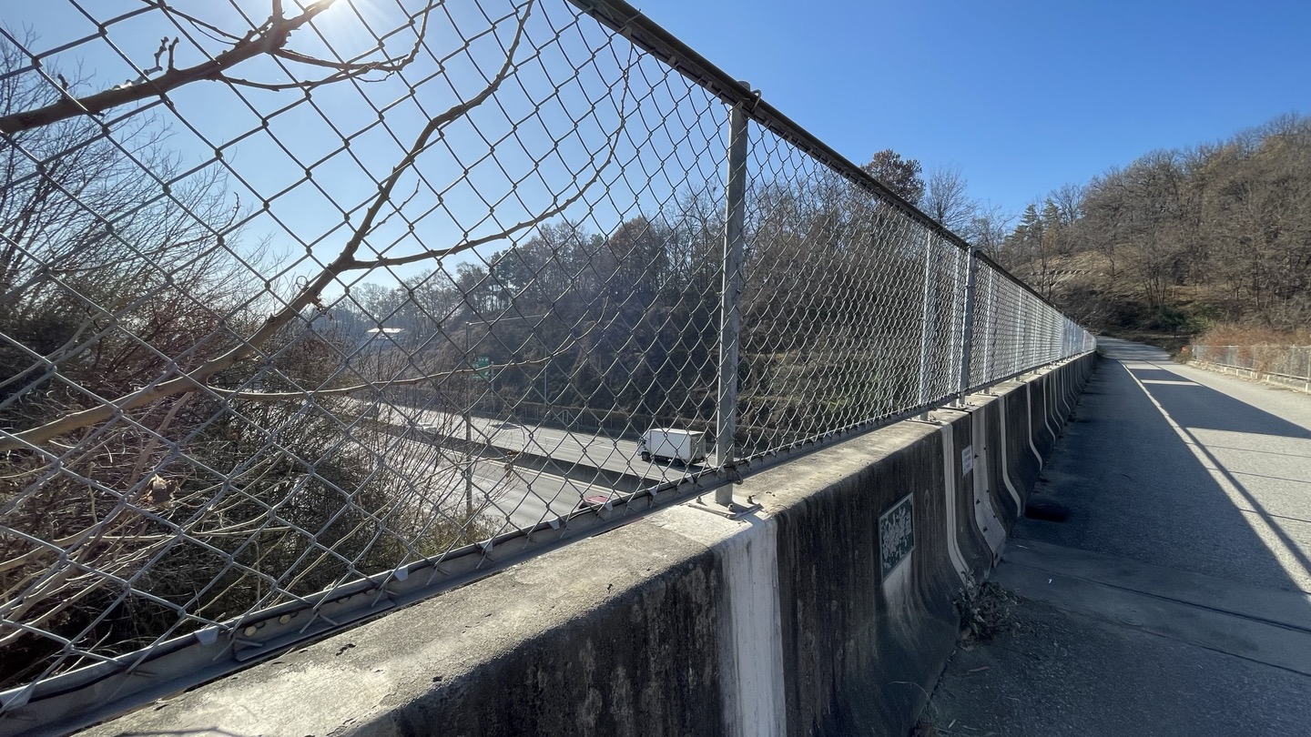 무우사삼거리 표지석에서 '수도권제2고속도로' 위를 지나는 정남2육교를 건넙니다.