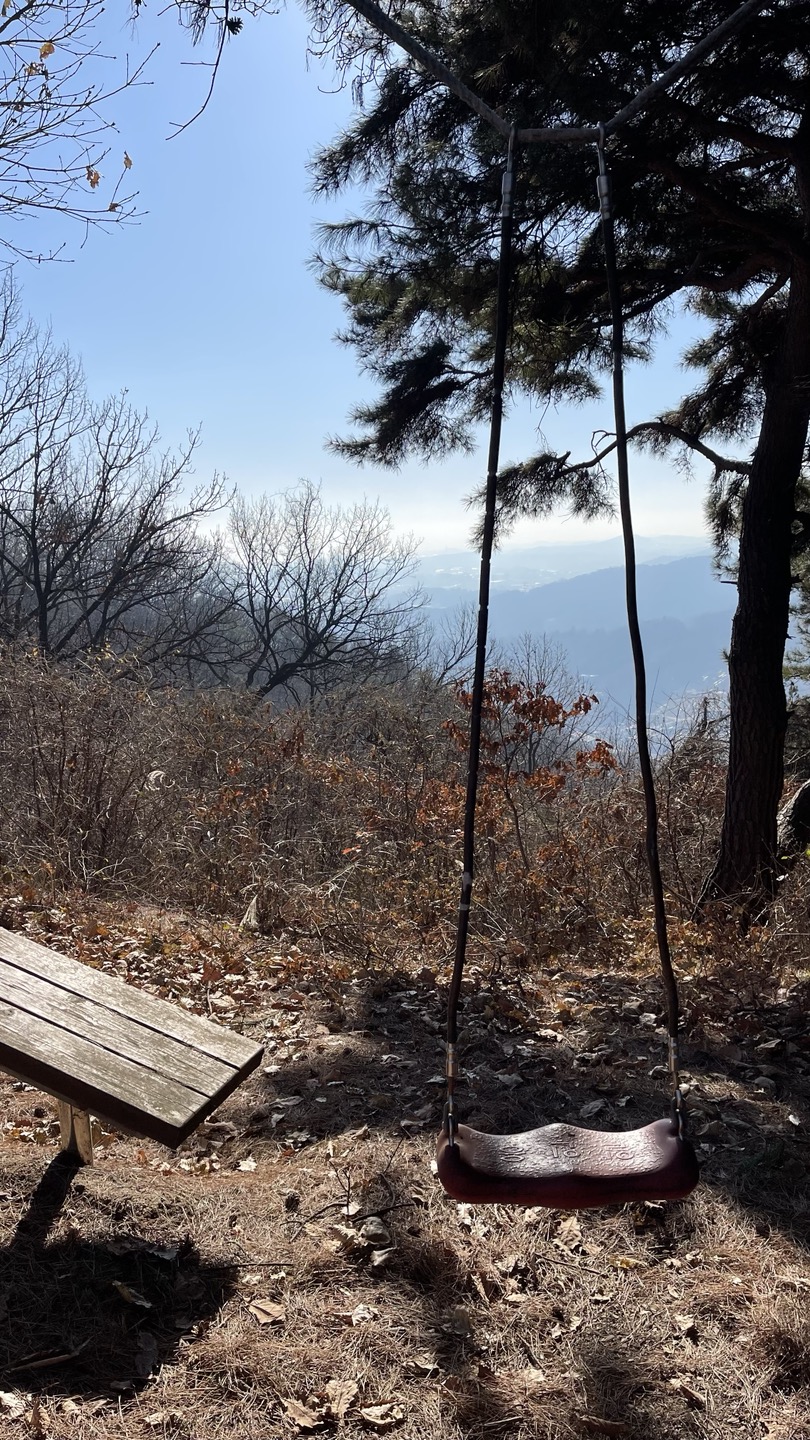 산 꼭대기에서 그네를 타고 풍경을 바라보니 색 다른 느낌이 듭니다.
