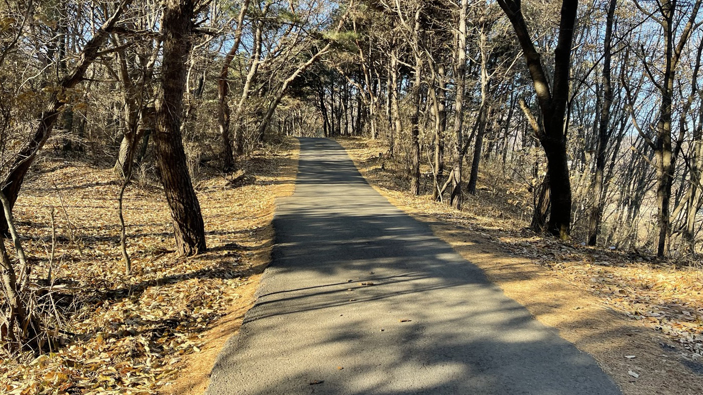 태봉산 등산로까지 가는 길은 포장된 도로길을 따라 한동안 올라가야 합니다.