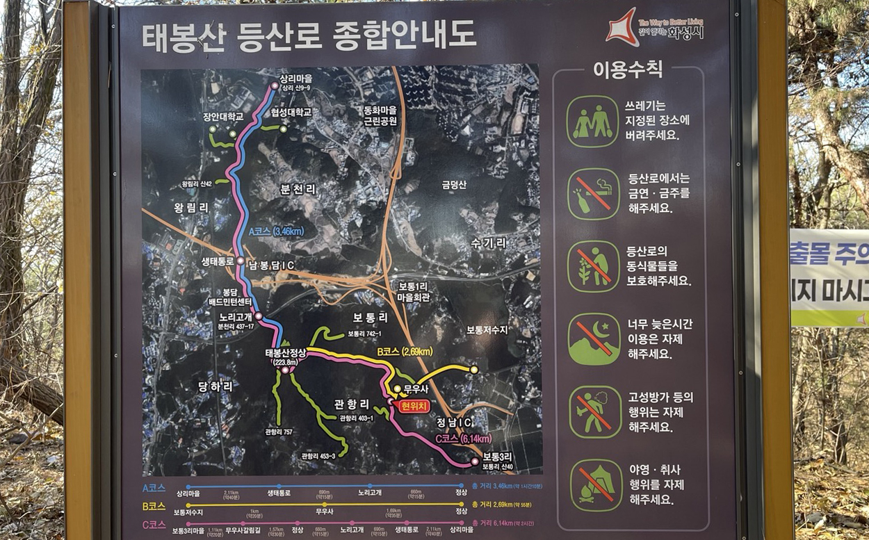 오늘의 등산코스는 화성시 정남면에 있는 '태봉산'입니다.
