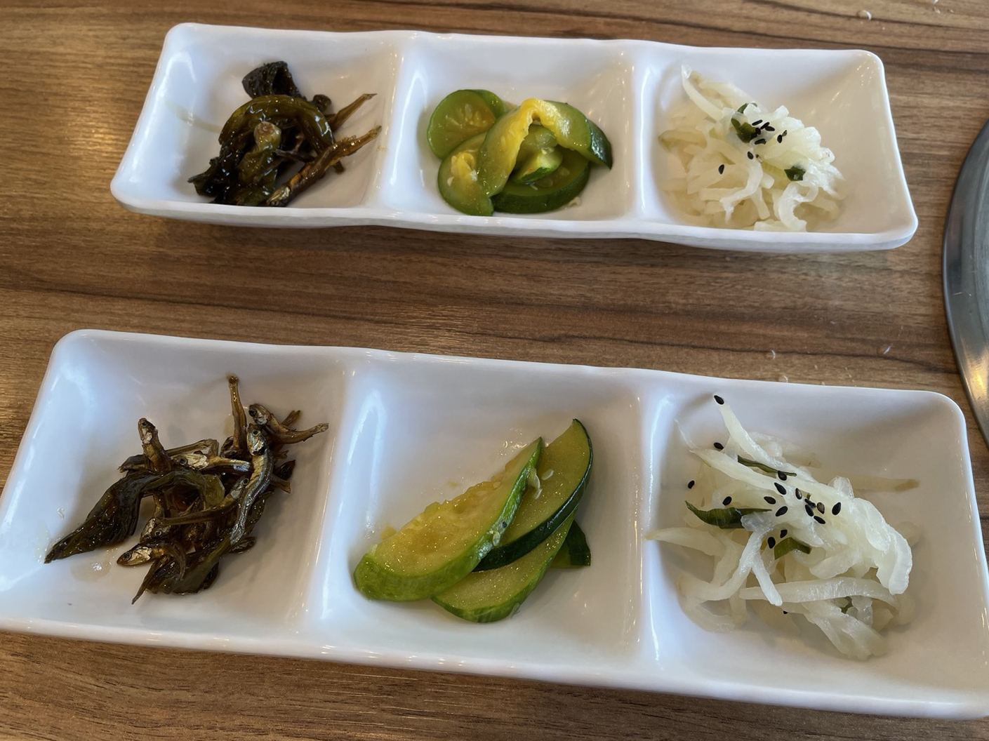 밑반찬이 1인당 1개씩 깔끔하게 담겨서 나옵니다.