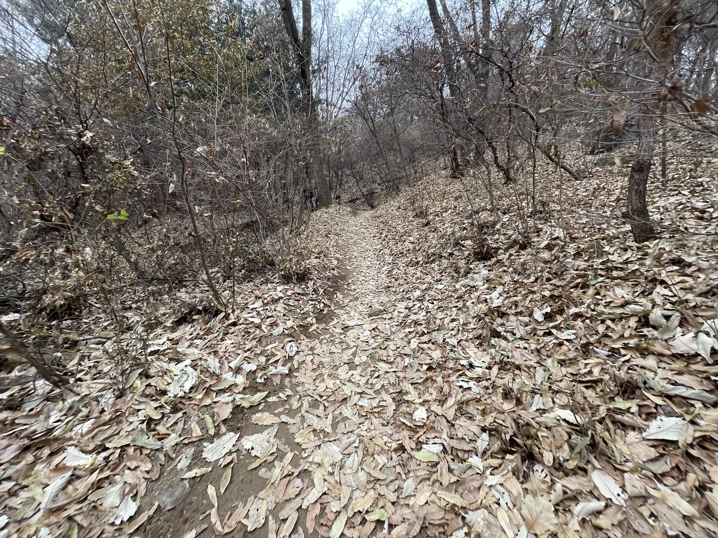 따뜻한 커피 한 모금 마시면서 쉬었다가 올라온 길을 되짚어 내려왔습니다. 내려올 때 일부 구간은 둘레길을 이용했어요.