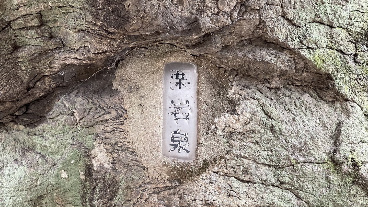 바위 위에 놓인 정상석과 뒤로 펼쳐진 나무숲 풍경이 멋스럽게 보입니다.