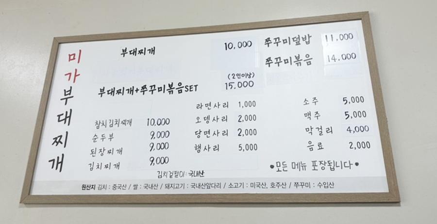 '미가 부대찌개'는 부대찌개와 쭈꾸미 볶음이 주메뉴입니다.