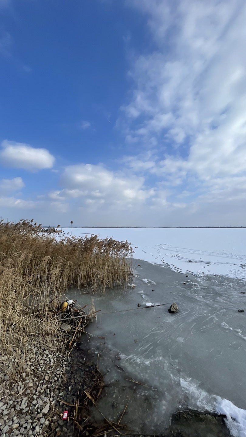 가만히 보니 고요한 호수 위로 하얗게 눈이 덮여 있었습니다. 며칠간의 한파로 얼어붙은 화성호에 눈이 뽀얗게 쌓여 있었어요. 뜻밖에 만난 풍경을 그냥 놓치기 싫어서 잠시 차를 세우고 고요한 광경을 감상하며 잠시 걸었습니다.