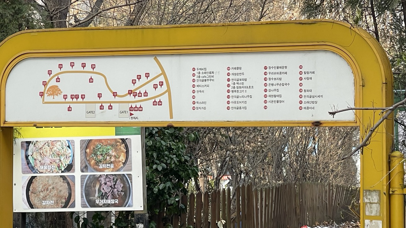 입구에 음식점의 위치와 상호명이 안내되어 있으니 참고하시면 됩니다.