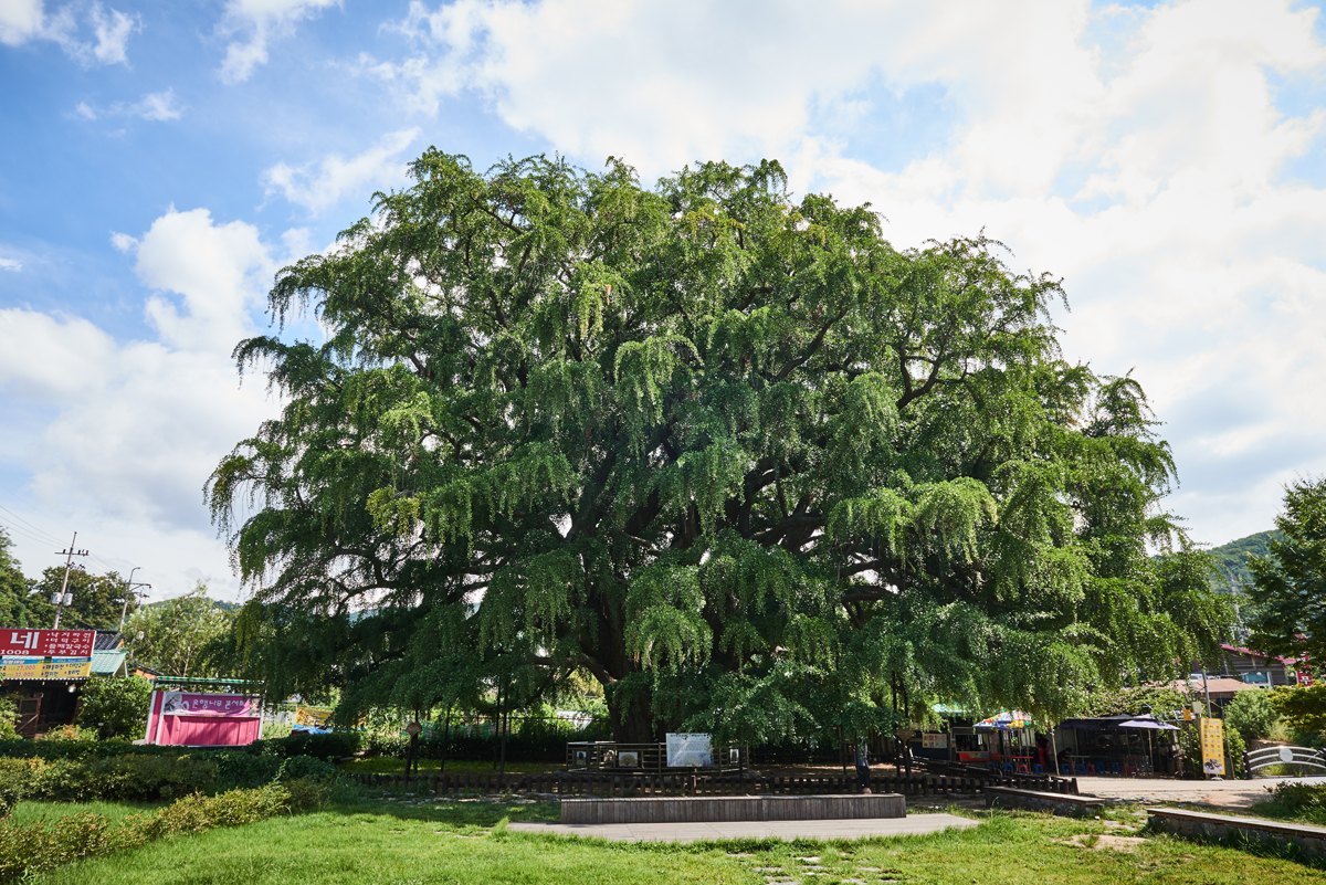 대한민국 천연기념물 제562호인 '장수동 은행나무'는 수령이 약 800년으로 추정되며 높이 약 30m, 둘레 약 8.6m 크기의 거대한 은행나무입니다.
