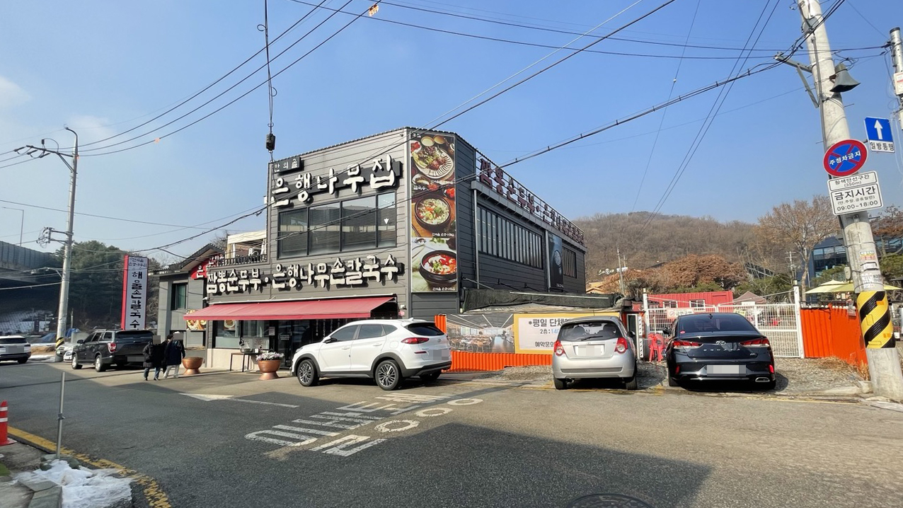 식당 앞에 주차공간은 넉넉하지 않아요. 잘해야 2~3대 정도?