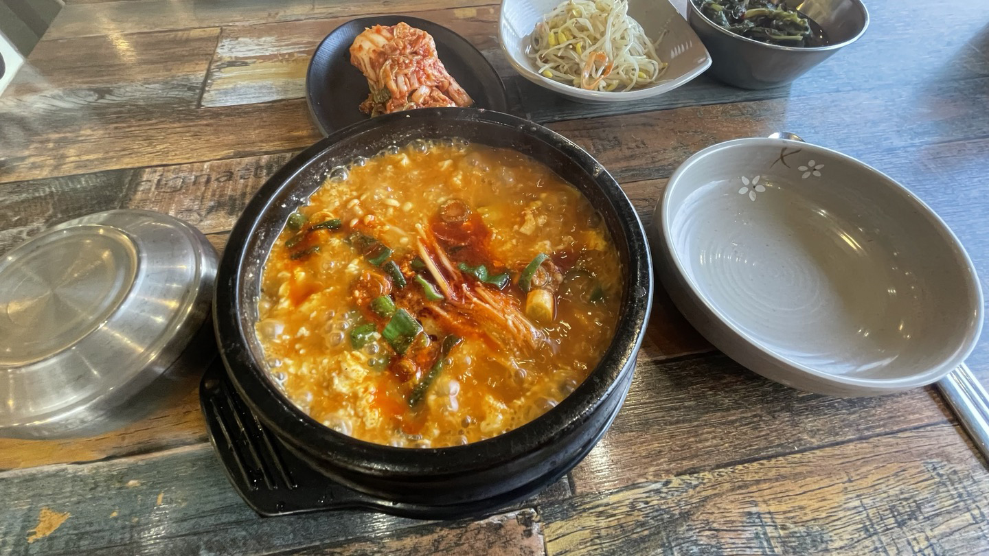 얼큰순두부에요. 순두부를 정말 오랜만에 먹어서 그런지 보기만 해도 침이 고였습니다.