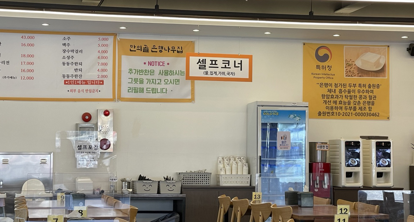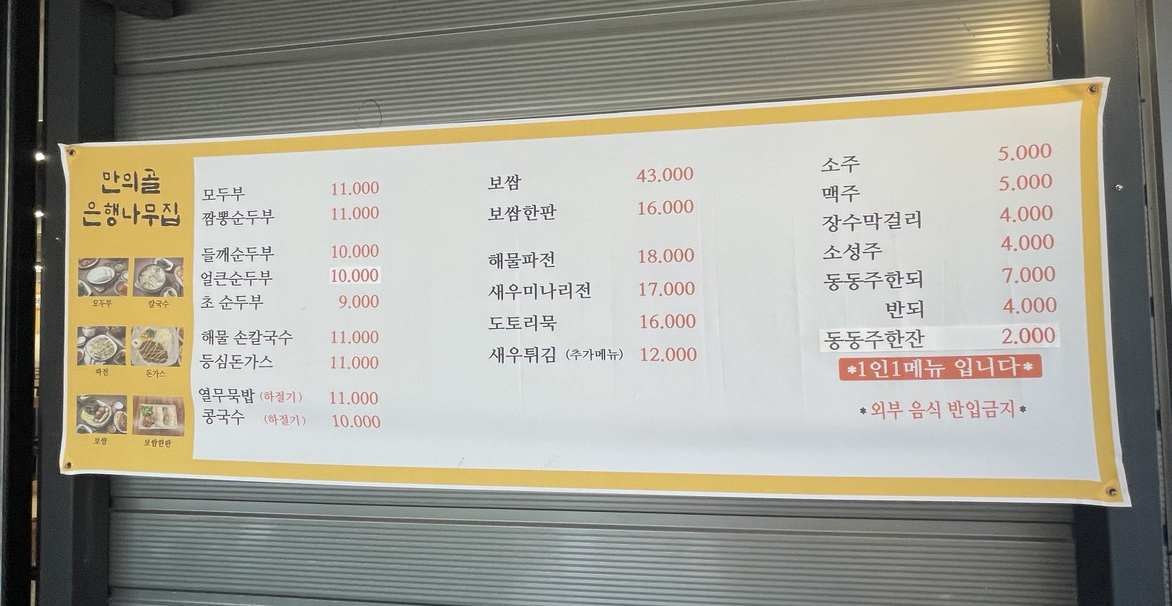 만의골 은행나무길에 있는 음식점들은 손두부 메뉴를 하는 곳이 많더라고요.