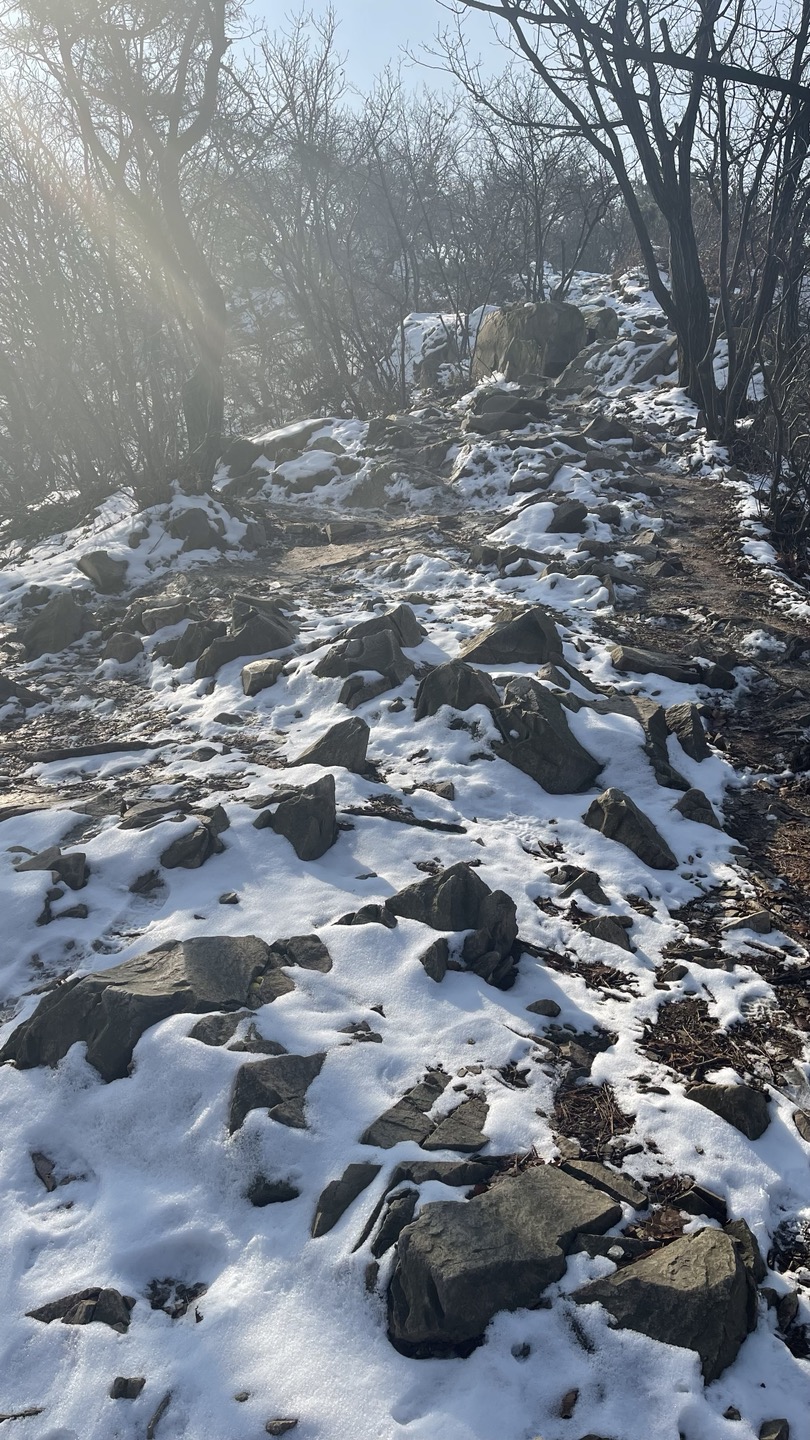 눈이 녹으면서 다시 얼어붙었는지 바위돌 사이로 반질반질한 얼음들이 있어서 꽤 미끄러웠어요.