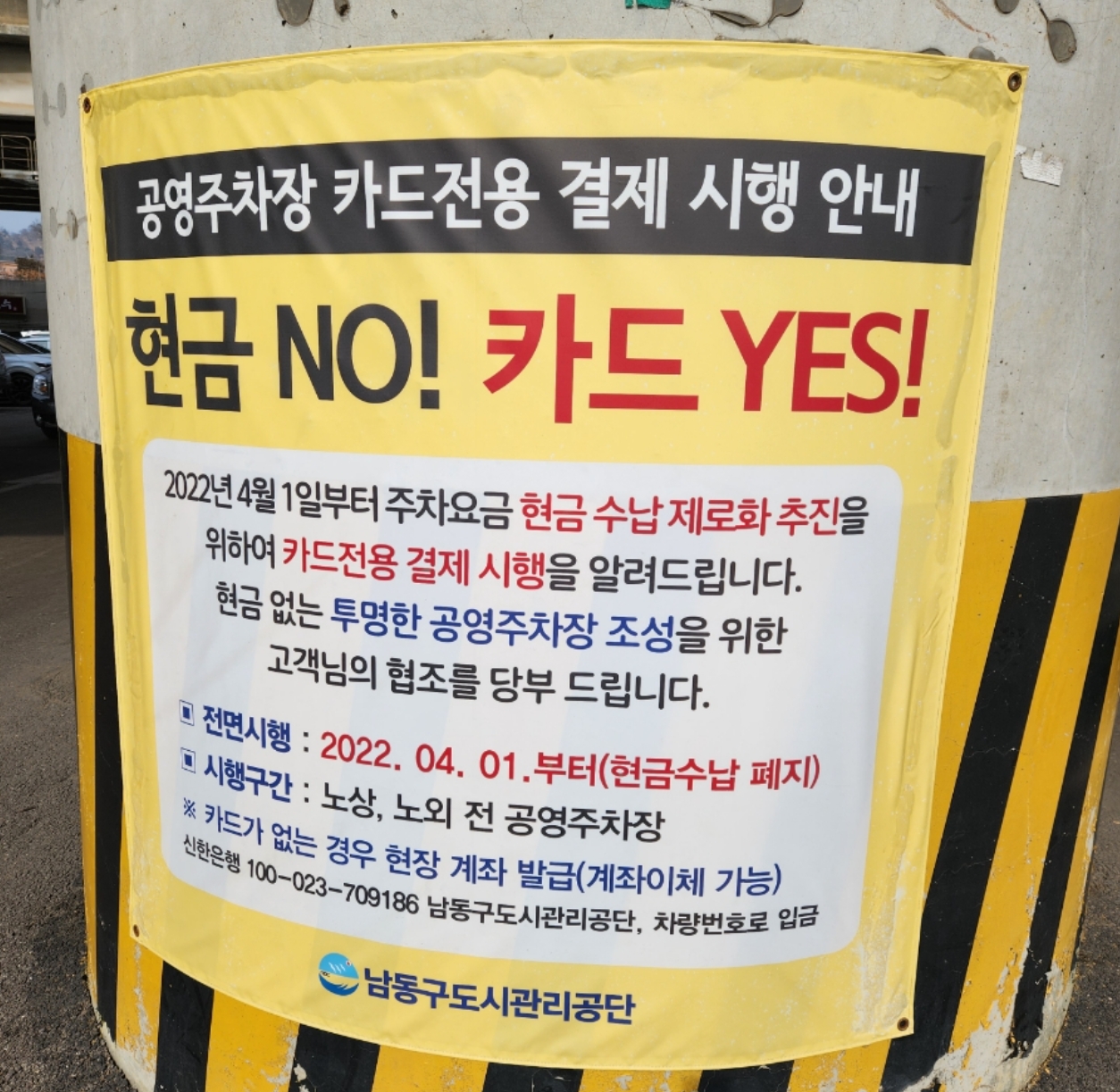 주차요금은 일일요금제로 일률적으로 2,000원이 부과되고, 카드결제만 가능합니다. 카드가 없을 경우 계좌이체도 가능하다고 안내되어 있습니다.