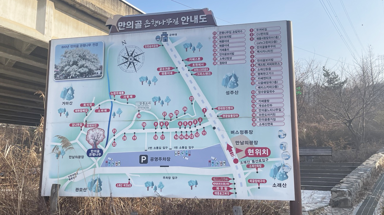 주차를 하고 도로쪽으로 나오면 '만의골 은행나무길' 안내도가 보입니다.