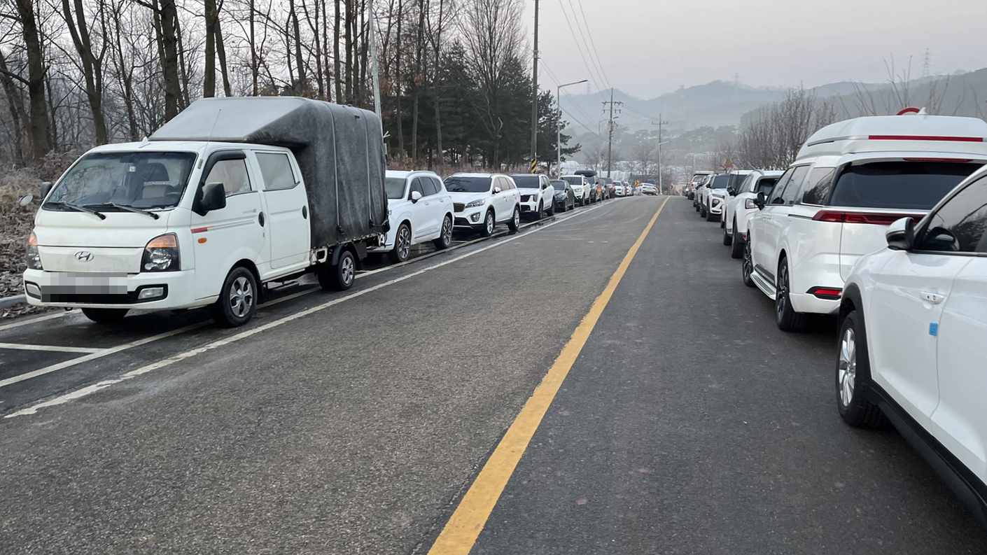 태행산을 여러번 다녀봤지만 주차장에 차가 이렇게 많이 주차되어 있는 것은 처음 봤어요! 주차장 뿐만 아니라 도로 한쪽으로도 일출을 보러 온 등산객들 차량이 길게 늘어 서 있었습니다.