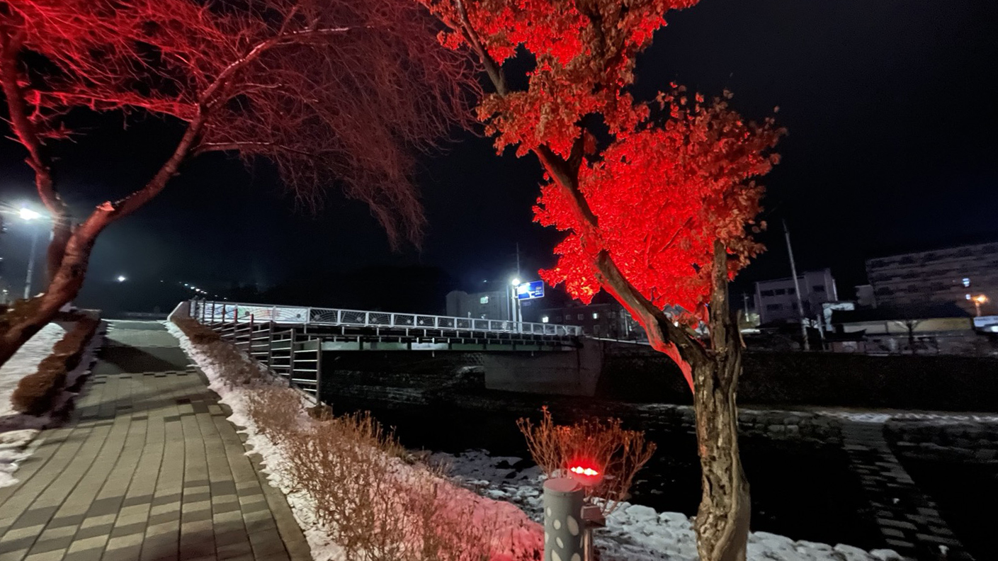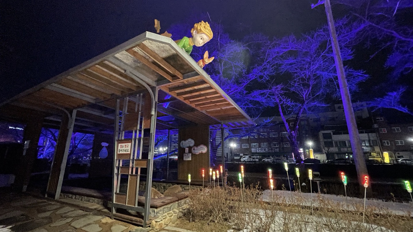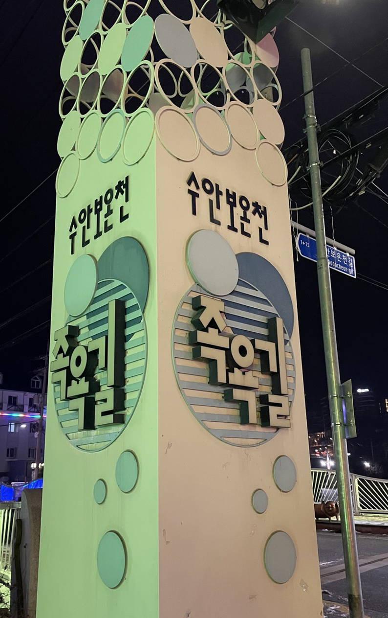 '석문동천'이라는 하천을 따라 조성되어 있는 족욕길은 무지개빛 조명이 켜져있어 꽤나 정취있고 걷기에도 좋았어요.
