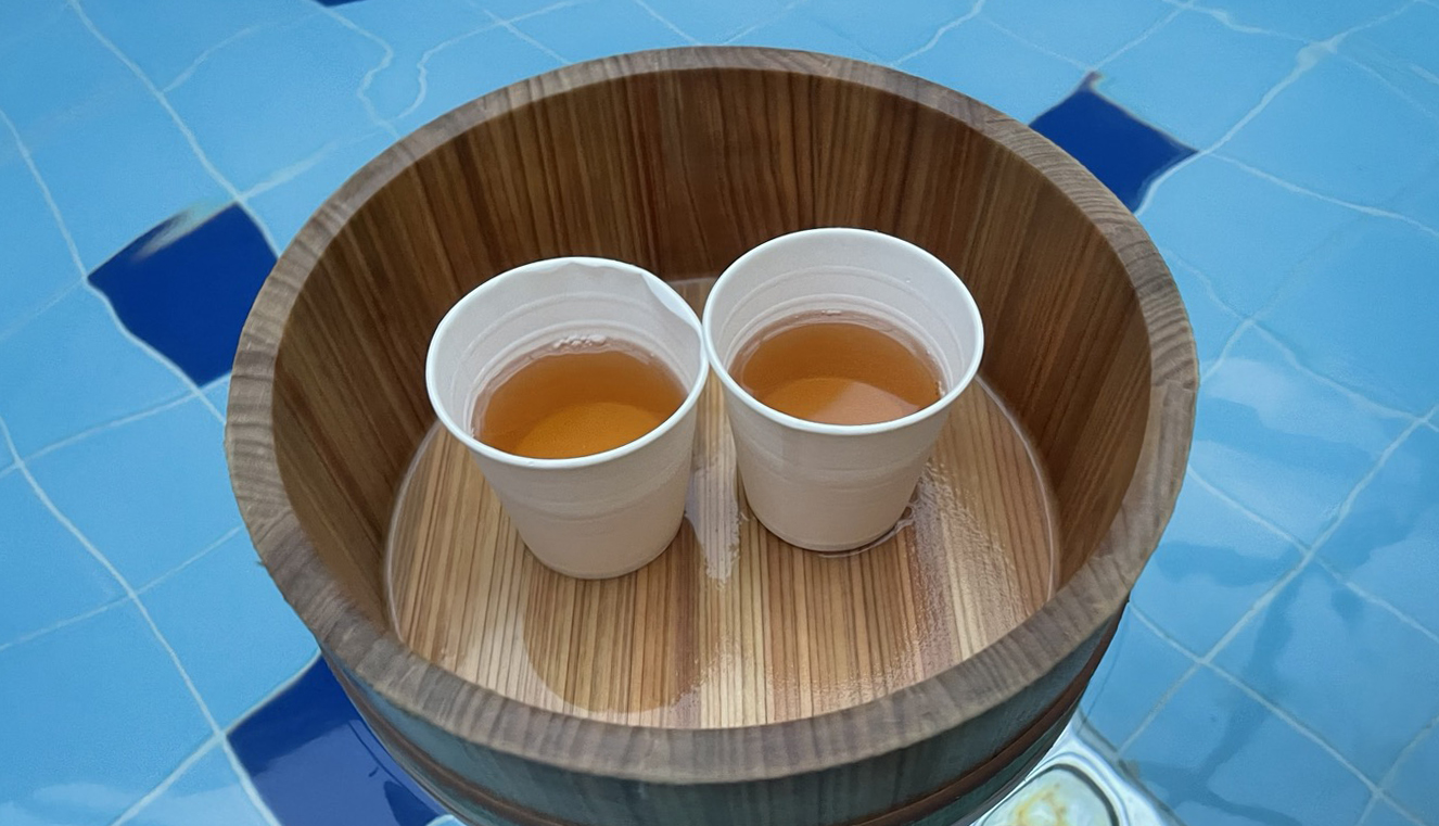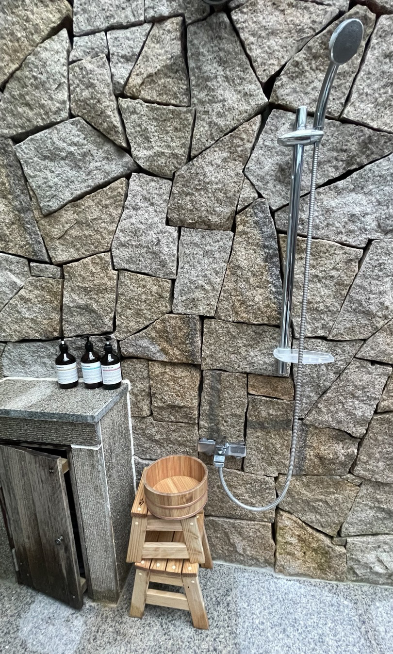 노천탕 옆으로 샤워기와 의자, 샴푸, 린스, 바디워시가 비치되어 있어 노천탕 내에서도 간단한 샤워 가능합니다.