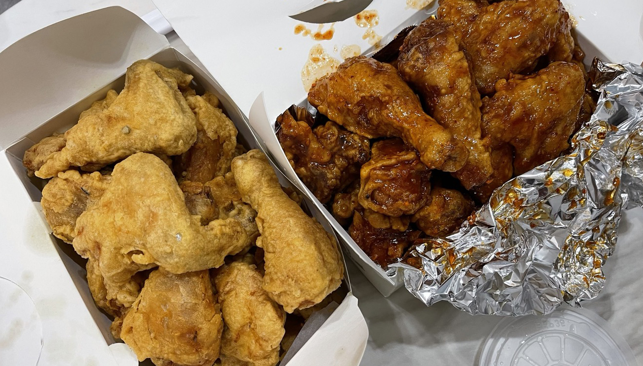 사는 동네에서 시켜먹던 치킨 양을 생각하고 1마리는 좀 부족할 것 같아 2마리를 시켰더니, 세상에~ 양이 이렇게나 많을 줄 몰랐어요; 사장님이 큰 닭을 사용하시나~