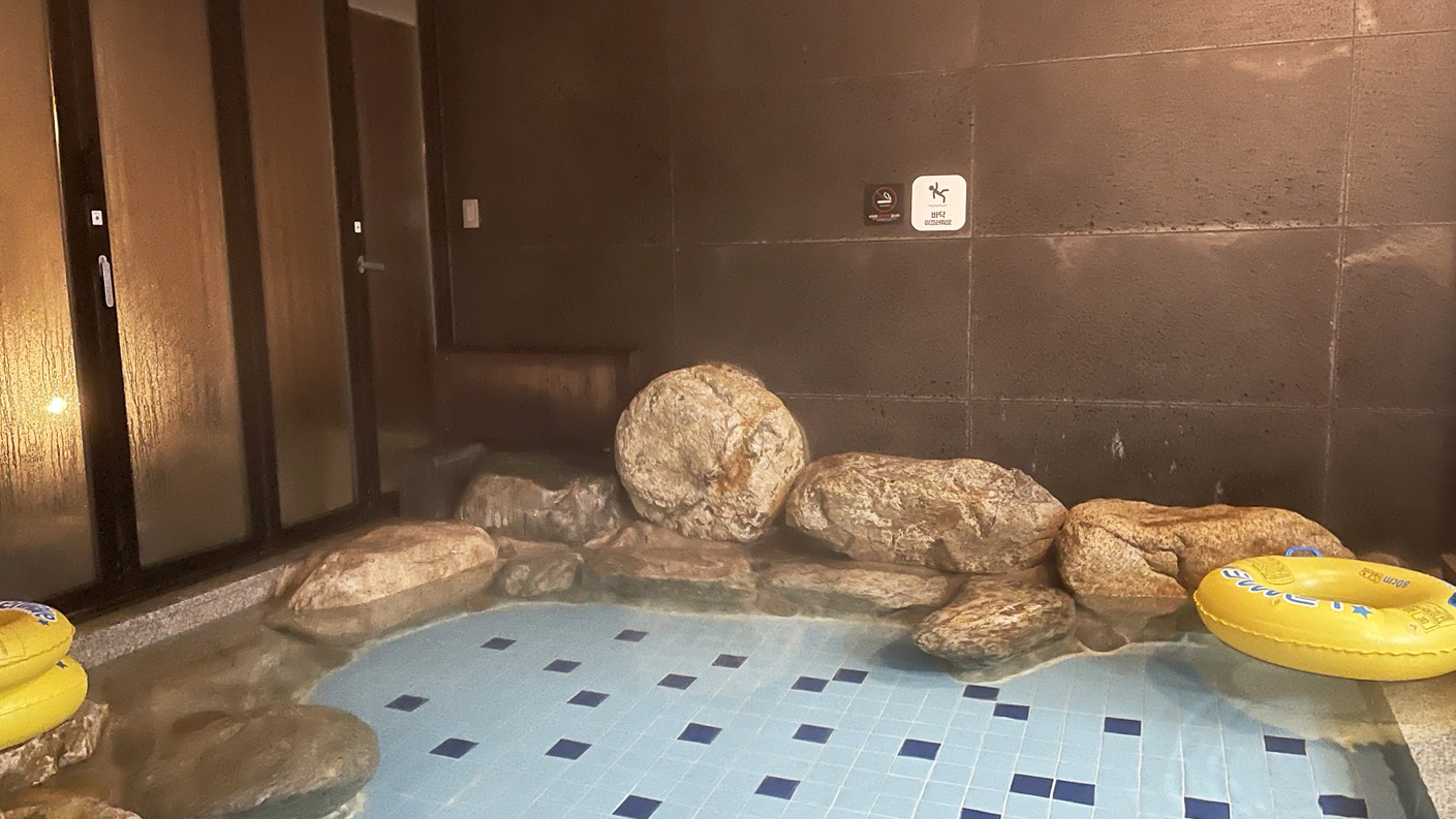 돌로 꾸며놓은 인테리어도 사진으로 봤을 때는 좀 조잡해 보인다고 생각했는데, 실제로 보니 노천탕 느낌 내는데 한몫 하더라고요~ 온천욕하다가 너무 더우면 중간중간 걸쳐 앉기도 편하고요.^^