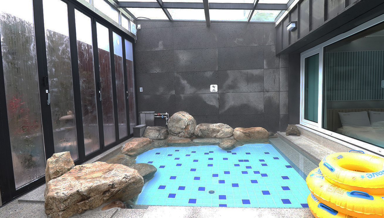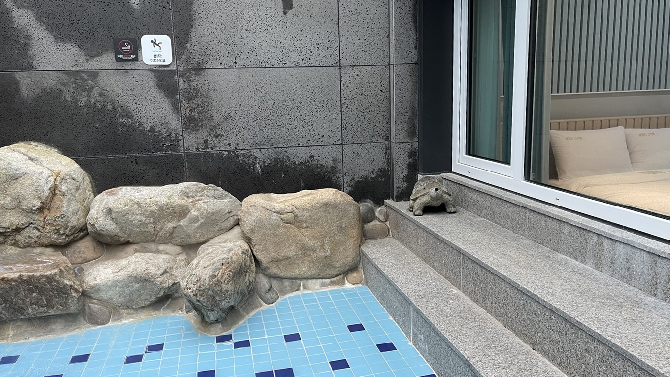 1층에 노천탕 객실이 2개 있는데요. 아무래도 맞닿아 있다보니 옆 객실의 노천탕 소음이 많이 들리기는 하더라고요. 처음에는 살짝 신경이 쓰였는데, 시간 지나니 적응되서 괜찮더라고요. 객실 내에서는 소음 문제 없었습니다.
