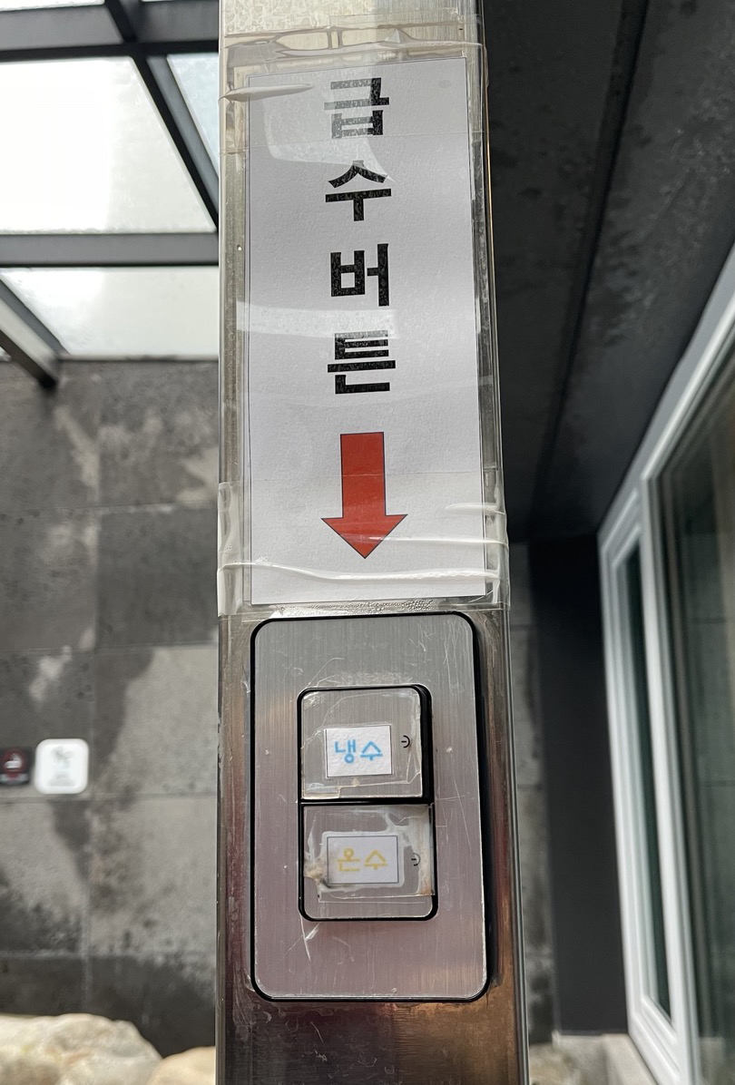 패밀리스파텔 노천탕은 수도벨브가 버튼형식으로 되어 있어요.