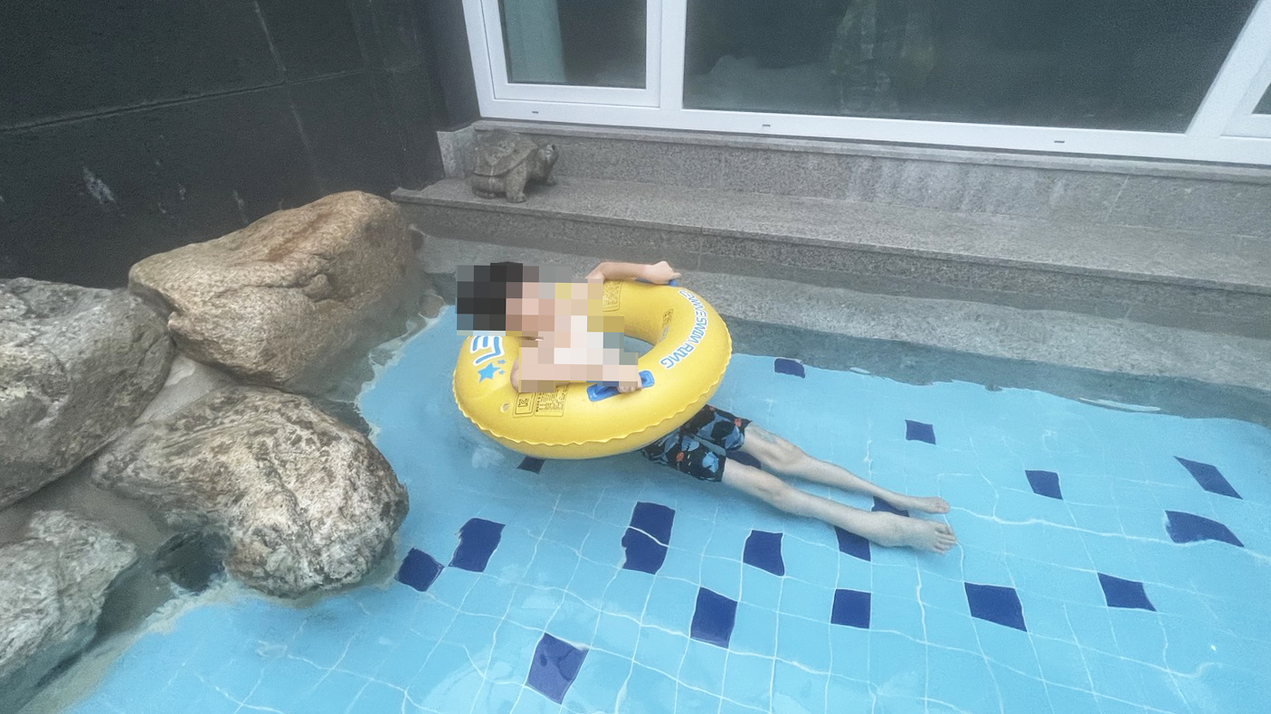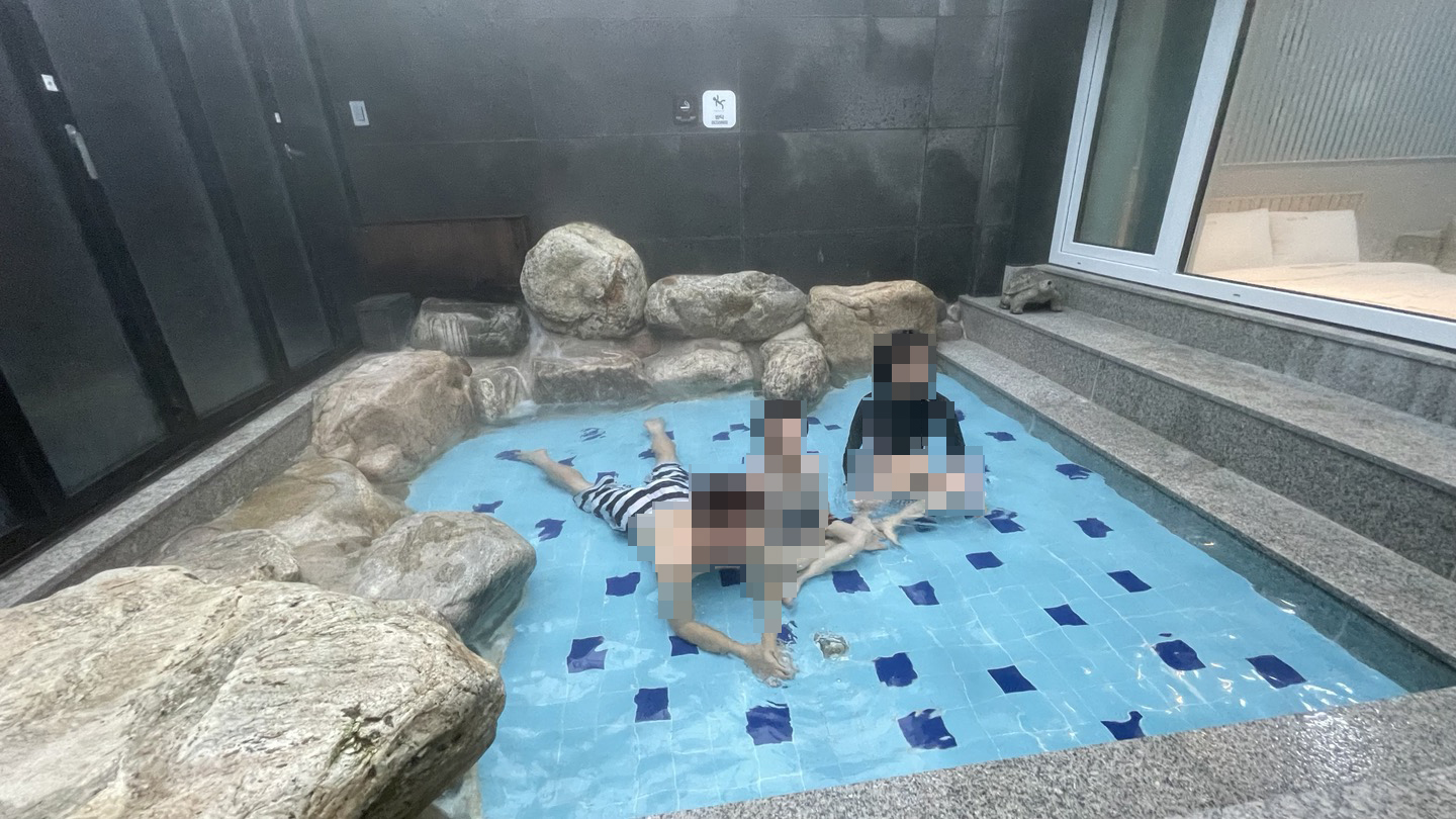 어른 2명, 아이 2명 들어가서 놀았는데요, 좁다는 생각 전혀 안들고 넉넉하게 온천욕 즐기기 좋았습니다.