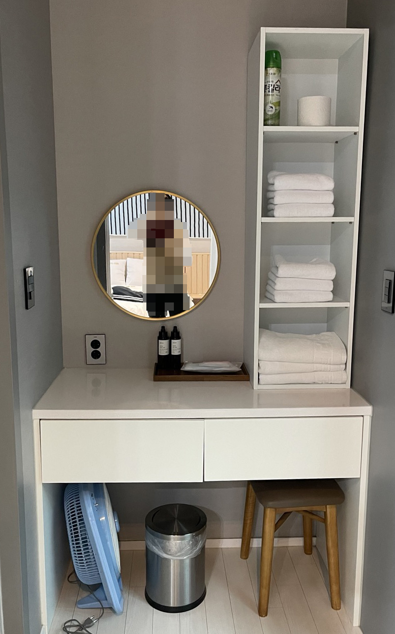 화장실과 온천탕 입구 사이에 있는 파우더룸입니다.