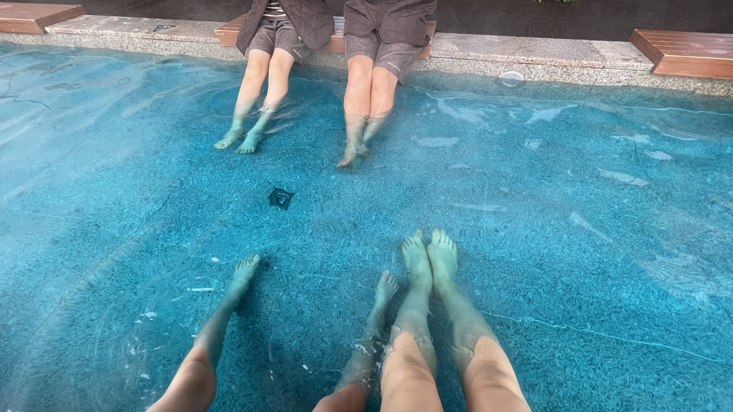 풋스파의 물 온도는 미지근하게 느껴지는 정도입니다.