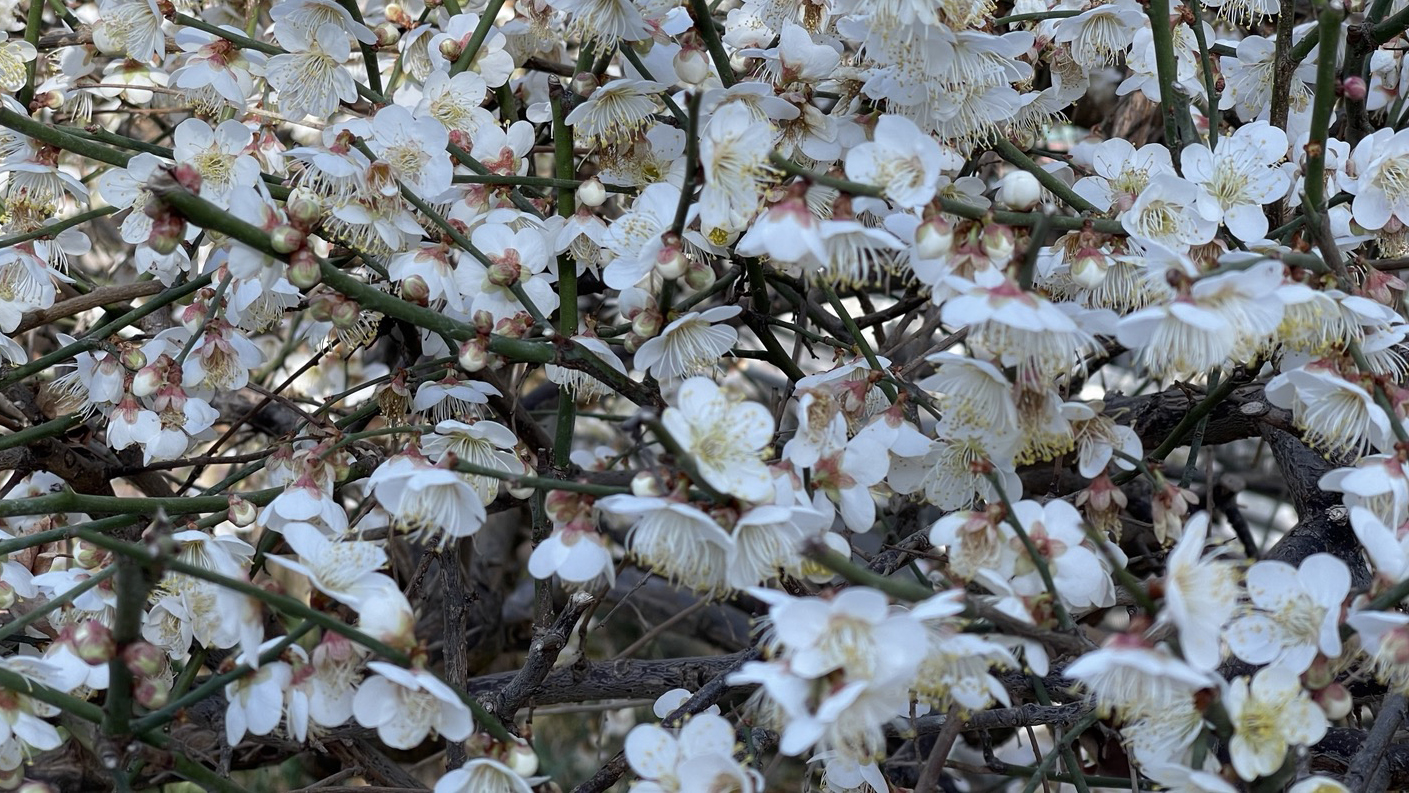 하얗게 피어오른 매화와 붉게 물든 산당화를 보니 봄이 온 것 같아 기분이 절로 좋아집니다.