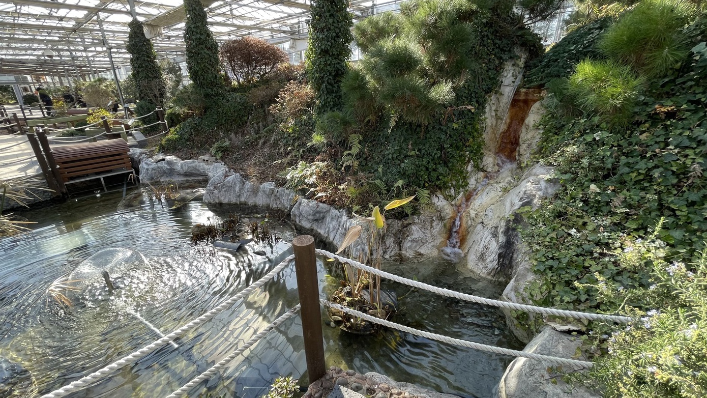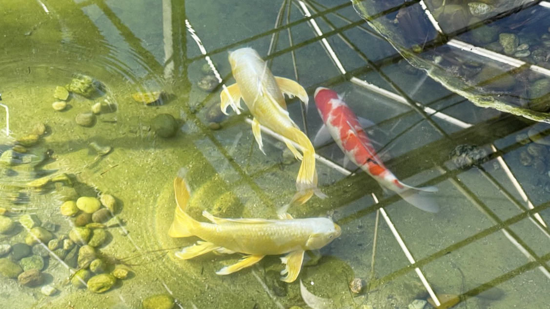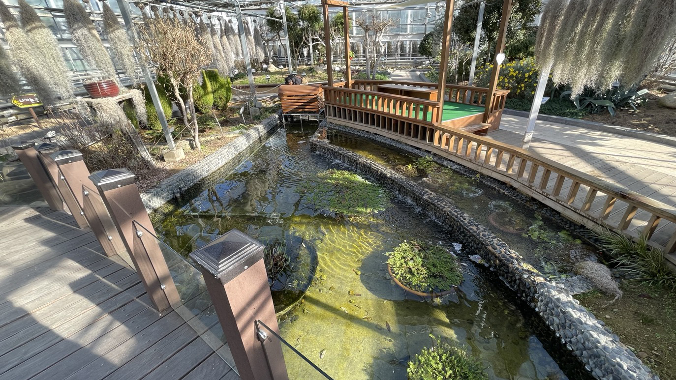 연못에 비단잉이들이 노닐고 있어서 구경하는 재미가 있습니다. 아쉽게도 연못 물관리는 그닥 좋아보이지는 않네요;;
